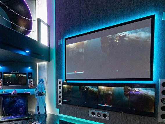 映画館を超える臨場感を追求し、映像・音響・防音・照明・インテリアまで トータルで丁寧に設計。